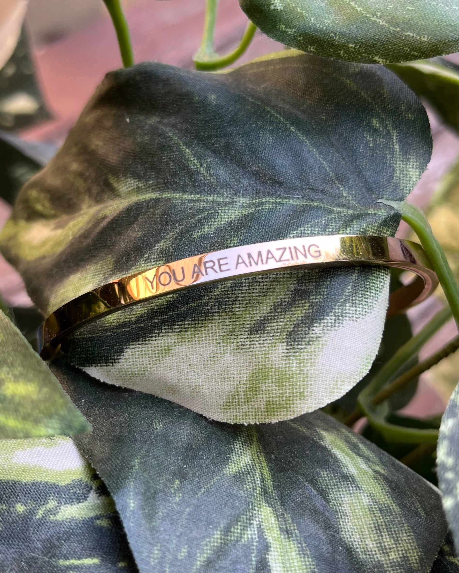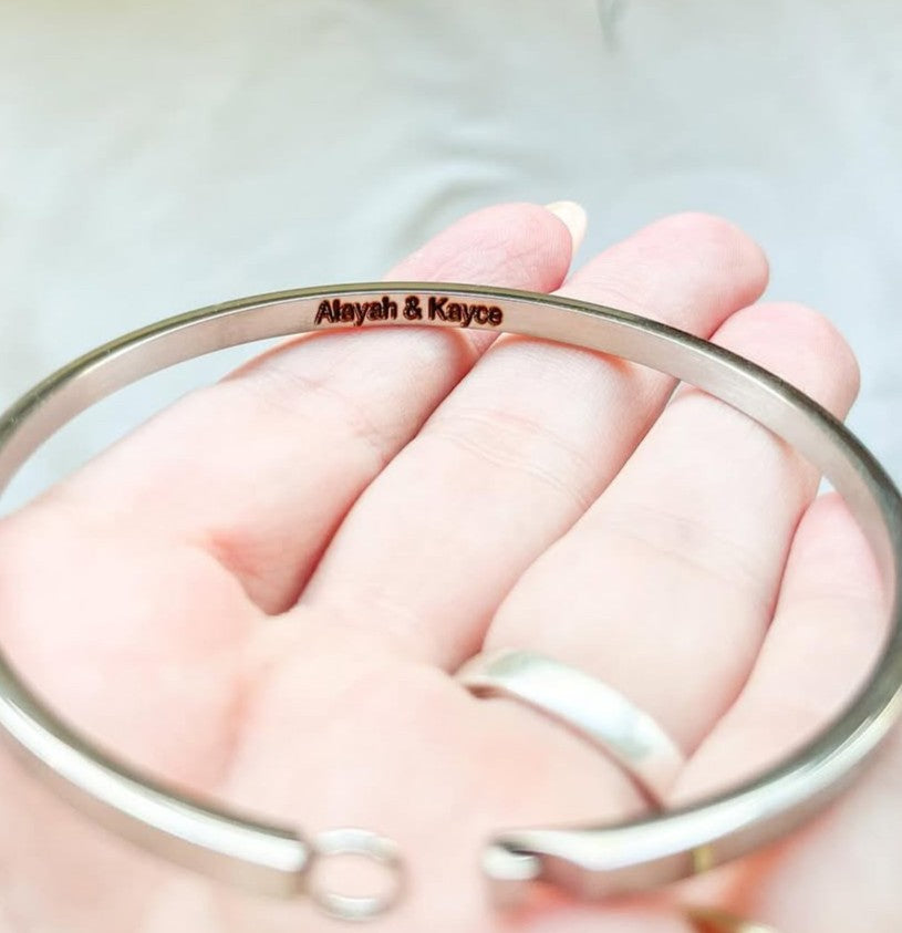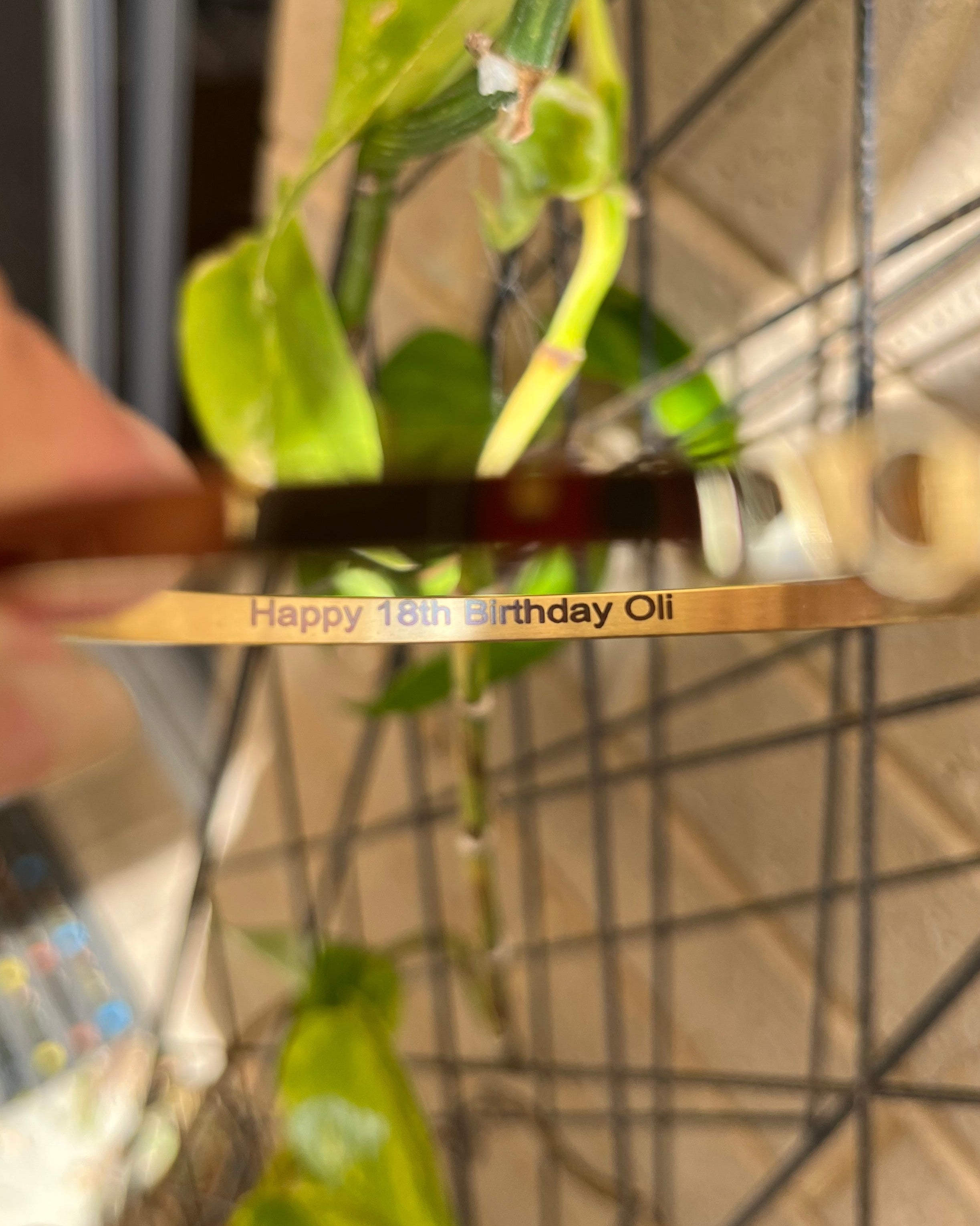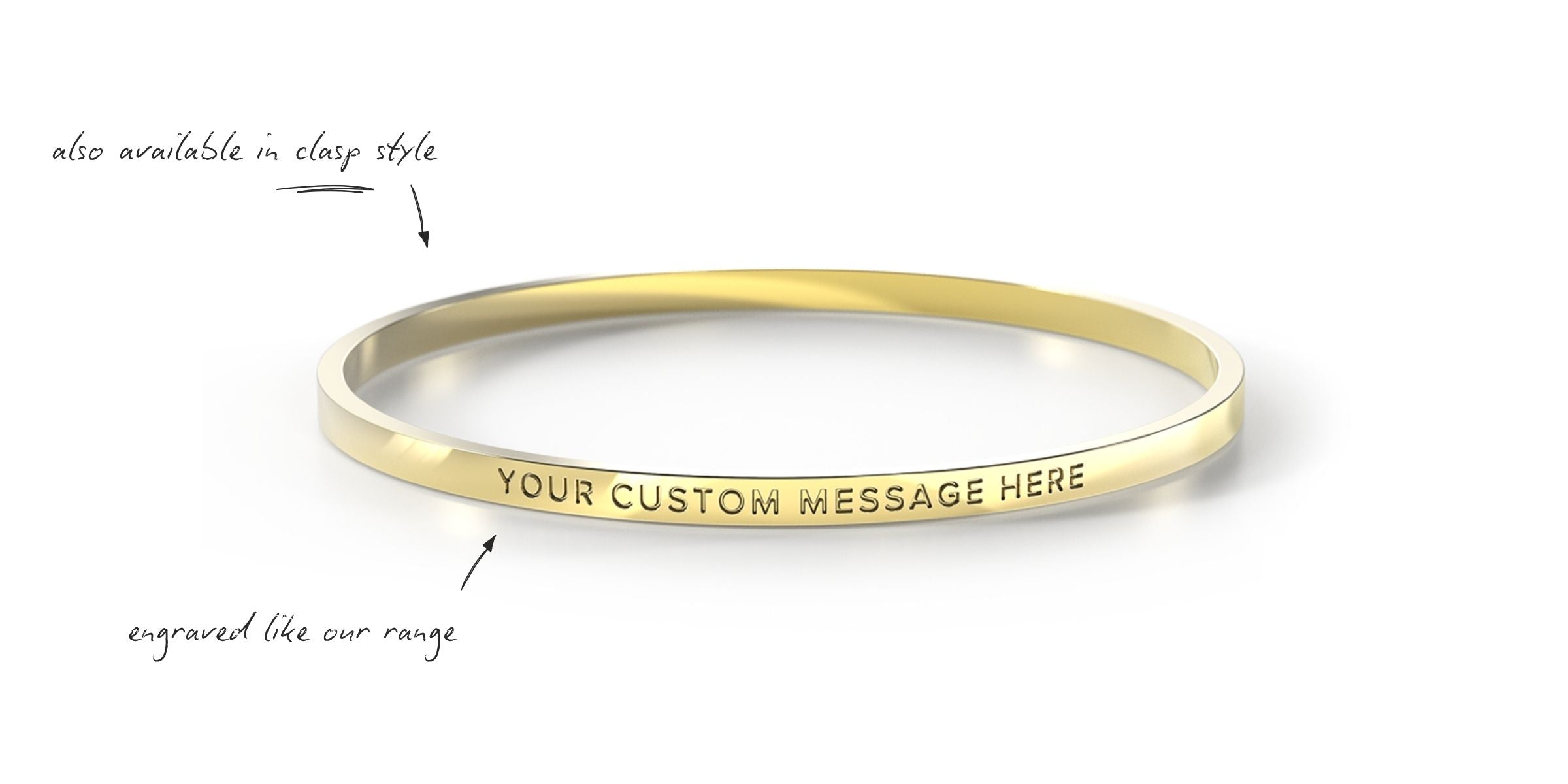 Love one of our phrases? Add a personal line inside the bangle for an extra touch.